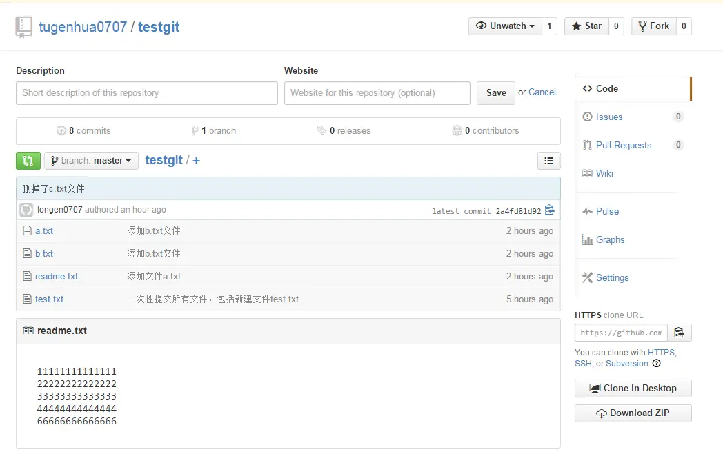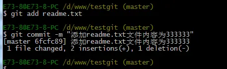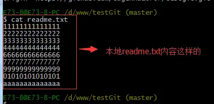 我在版本库testgit目录下新建一个记事本文件 readme.txt 内容如下:11111111