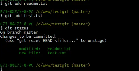 现在我们先使用git add 命令把2个文件都添加到暂存区中,再使用git status来查看下状态,如下: