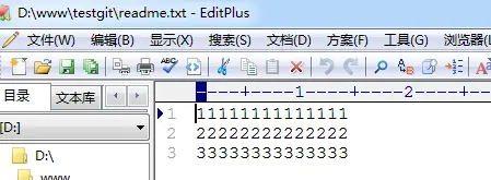 如上可以看到,readme.txt文件内容从一行11111111改成 二行 添加了一行22222222内容。