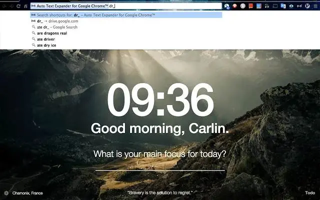 Momentum 是一个多合一标签页背景扩展,除了美图之外,它还会展示你的to-do 列表,每次打开新标签的时候,你都会看到自己接下来要做什么事情。