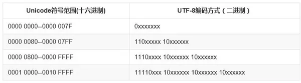 UTF-8(Unicode Transformation Format)作为 Unicode 的一种实现方式,广泛应用于互联网,它是一种变长的字符编码,可以根据具体情况用1-4个字节来表示一个字符。比如英文字符这些原本就可以用 ASCII 码表示的字符用UTF-8表示时就只需要一个字节的空间,和 ASCII 是一样的。对于多字节(n个字节)的字符,第一个字节的前n为都设为1,第n+1位设为0,后面字节的前两位都设为10。剩下的二进制位全部用该字符的unicode码填充。
