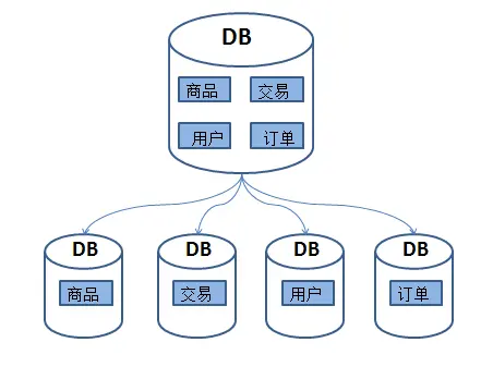由于网站的访问量越来越大,尽管采取了读写分离的方式,但随着数据库的压力继续增加,数据库的瓶颈越来越突出。这时我们发现,我们的网站演进到现在,交易、商品、用户的数据都还在同一个数据库中。然而在这个巨大而且臃肿的数据库中,表和表之间的数据很多是没有关系的,也不需要JOIN操作,理论上就应该把它们分别放到不同的服务器,即垂直分库。