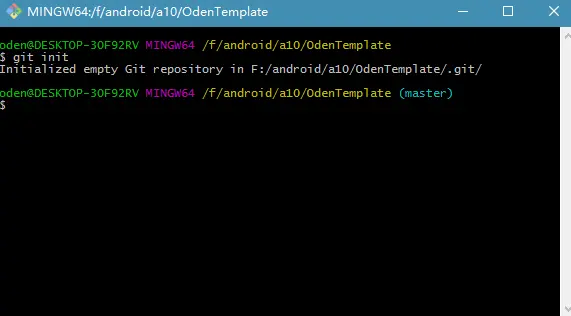 2、在当前工程根目录下,右键选择git Bash Here,在弹出的命令框中输入git init新建git仓库