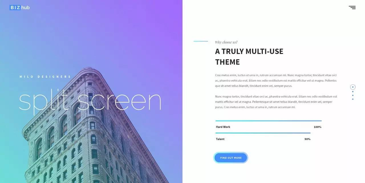 因为适应网页设计的需要,内容的分割变得更加重要,能把屏幕的内容划分为两个或更多部分。一个划分清晰的网站能够同时展示给观者多个同等重要的信息。这一趋势始于2015年末,但在2017年会发展的更远,并且很可能会出现在更多网站上。