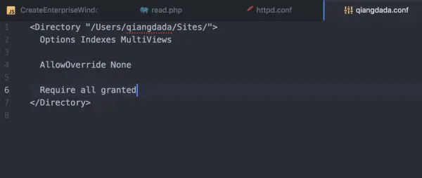 这是我们修改的第三个文件(注释:<**YOUR USERNAME**>指得是你电脑的用户名)。找到 /etc/apache2/users/ 目录下的<**YOUR USERNAME**>.conf文件。
