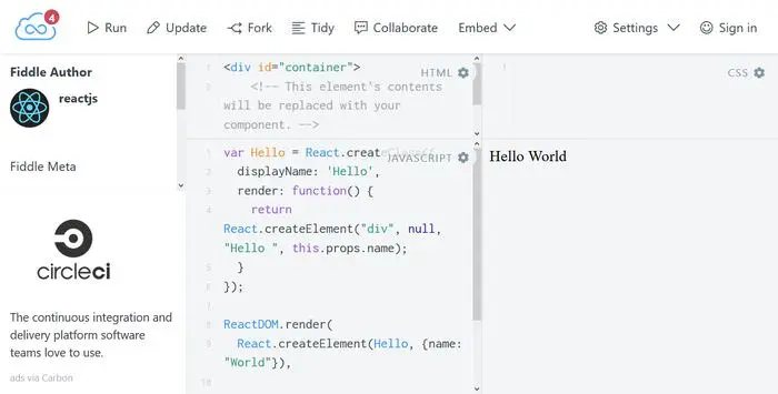 如果你想快速的尝试一下React ,你可以使用Codepen 上的这个“Hello World” 互动式demo 。