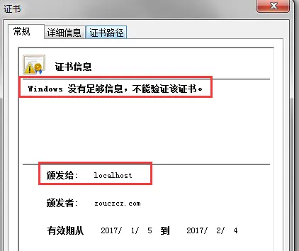 这里要注意的是,本地测试的时候,Common Name属性要填写localhost,若填写线上应用地址,则使用时客户端会报错:
