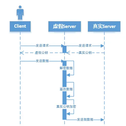 然而,这个世界是很险恶的,会有人把自己伪装成Server,给Client下发他们自己的公钥,并拦截真实Server下发给Client的真实公钥。