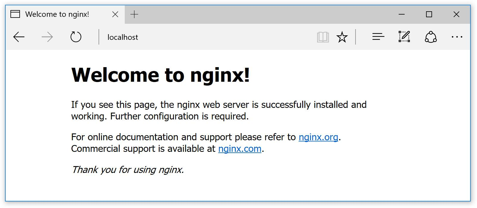 通过这个start命令你可以打开Edge浏览器访问一个运行在Linux容器里的Nginx自带的欢迎页面。