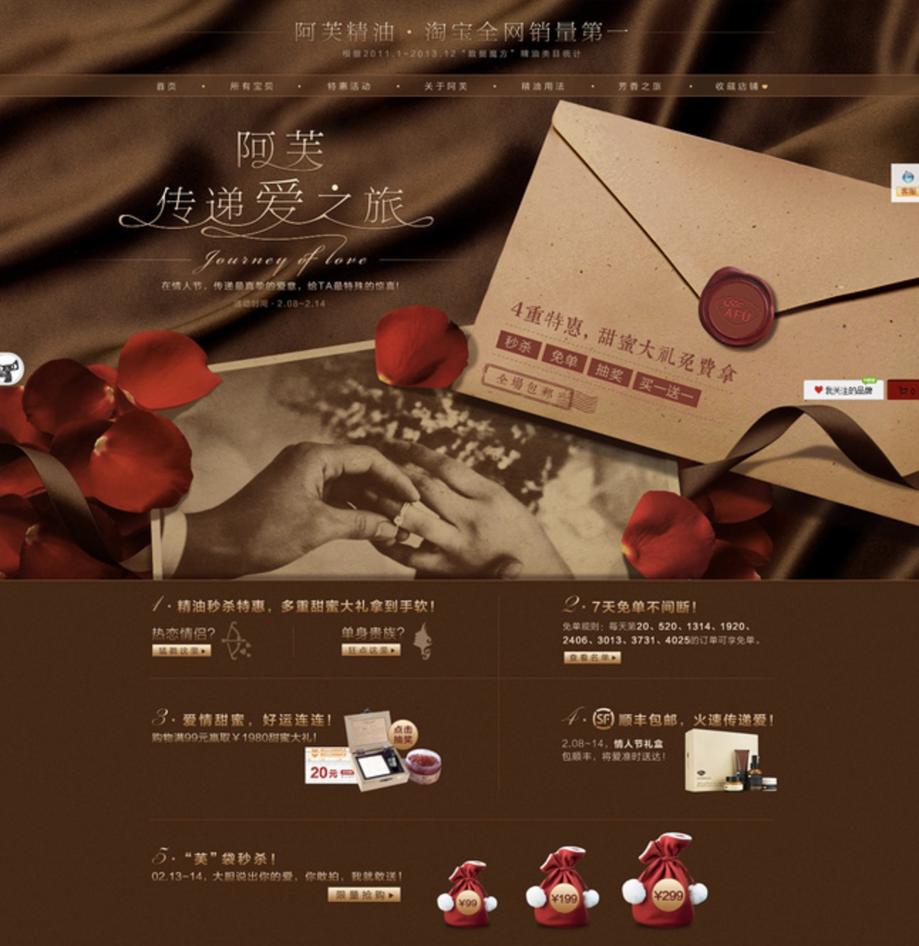还有其他一些方式大家可以自己去总结观察,同时以上所有的内容都构成了一个完整的情人节页面的创意方向。