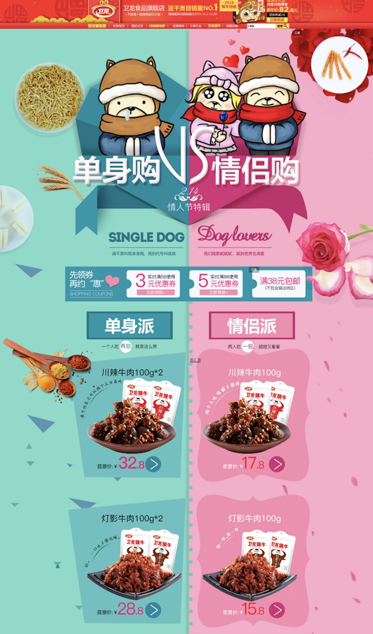 虽然我个人对所有的恋情都持可以理解的态度,但是我们平时看到的活动最常见的依然还是针对的是异性恋(一些小众的电商品牌或者产品可能会把人群定位为非异性恋的对象)。
