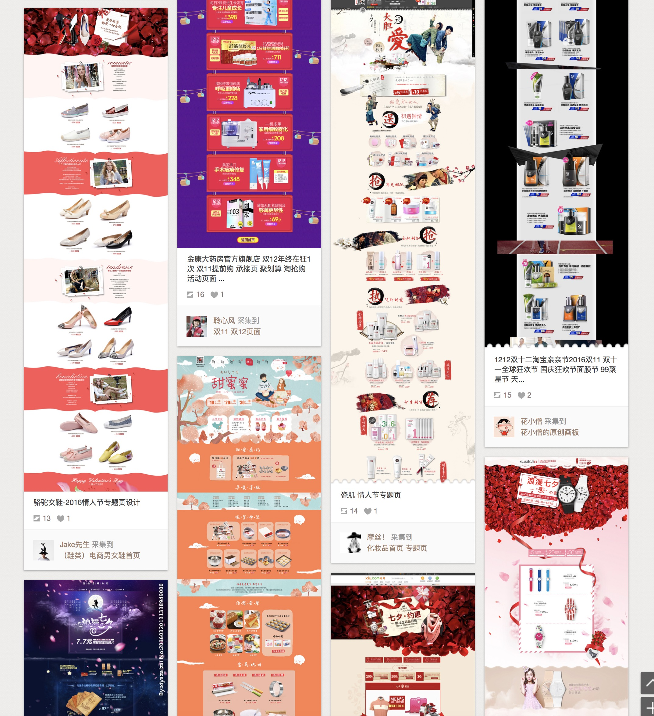 不过我看了很多案例发现,现在的情人节页面普遍还是为年轻群体设计的,在花瓣,搜索关键词情人节,出现的都是这样的页面: