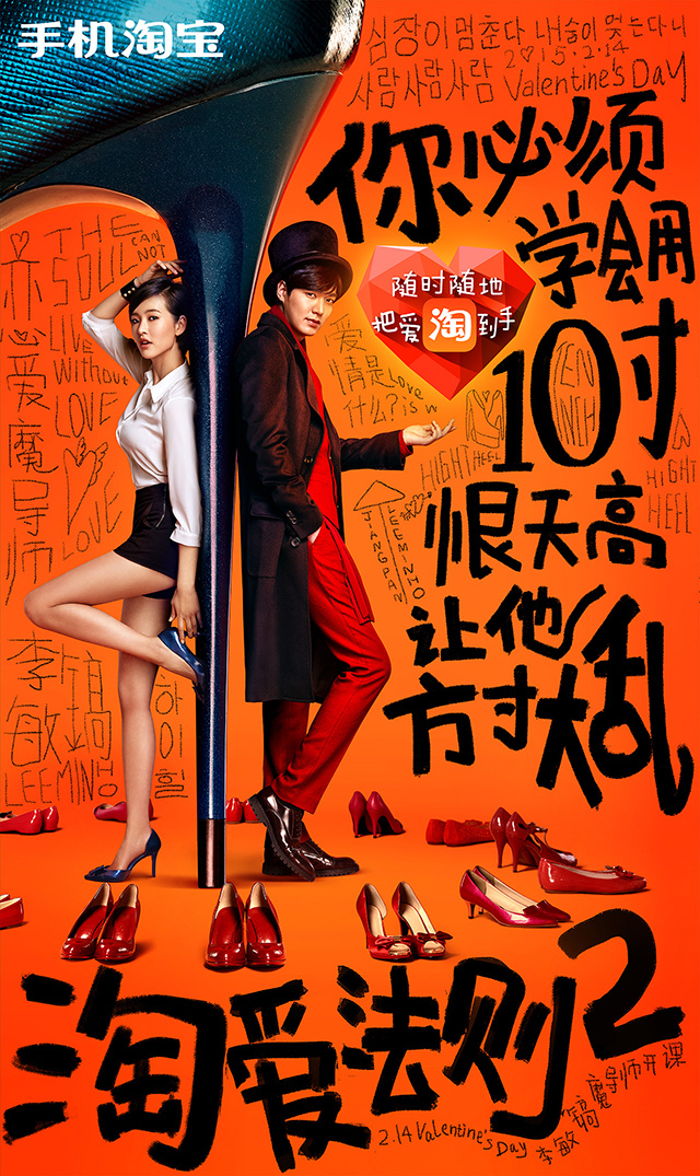 不过虽然都是针对年轻人群体,但可能是淘宝钱多资源多各方面都比较有条件的缘故,玩的花样也会多一些,下面这个应该是2015年的情人节海报。
