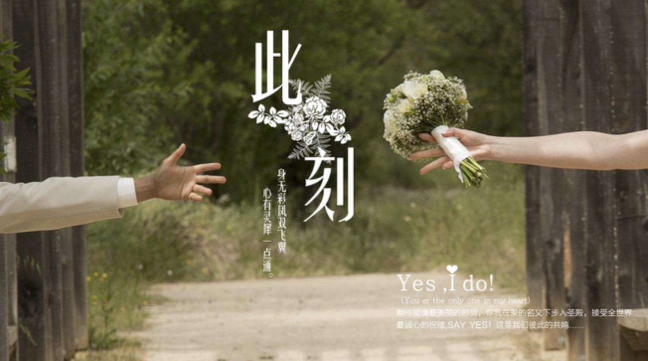 场景画面:一些比较暖心或动人的场景,比如手牵手/亲吻/倚靠肩膀/比心/手捧花/骑单车搂腰/表白/穿着婚在纱夕阳下的奔跑的样子等。