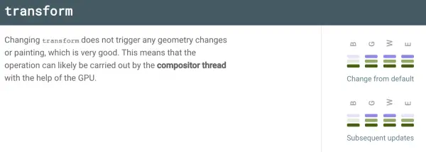 - style改了transform属性,在blink和edge浏览器里面不需要layout和paint,如下面css trigger的说明: