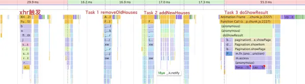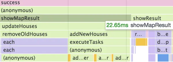 其一的showMapResut就花费了22.65ms,它又调了removeOldHouses和addNewHouses,这两个各自的时间约为11ms。