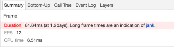 发生掉帧的时候,我们可以使用的Chrome的devtools的timeline来观察这个过程。以最开始的例子做说明。
