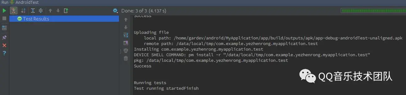 测试用例执行完成,在Android Studio的控制台上,能看到如下的结果输出