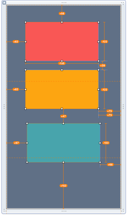 1、给scrollview添加三个view,分别设置每个view的上下左右距离最近view的距离为0,这样三个view都具有了4个约束,经过上面的分析,这样做肯定是要报红的,因为scrollview不知道自己的子控件在水平和垂直方向上到底占用多少距离。