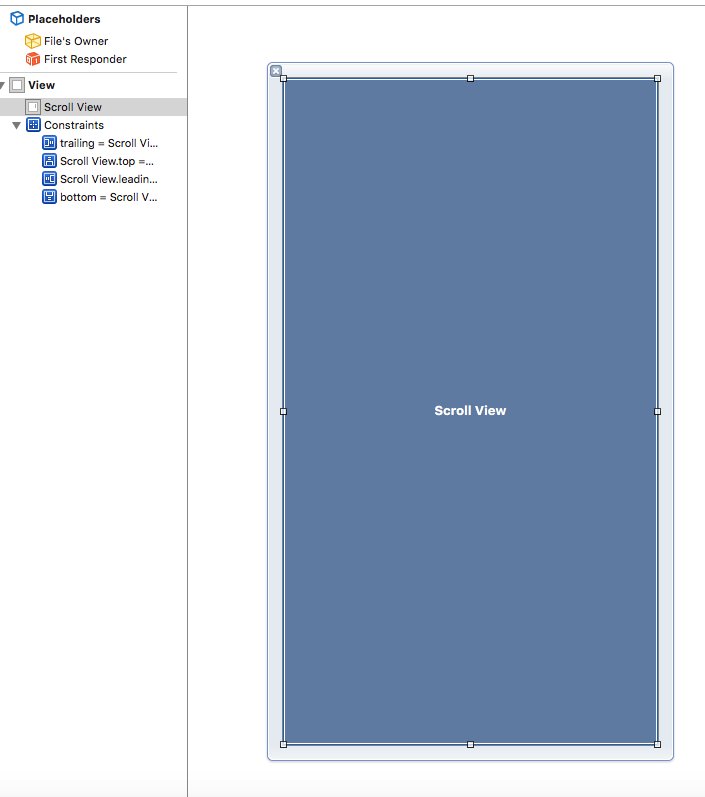 1. 控制器的view添加一个scrollView,设置左右上下距控制器的view都为0,因为能够唯一的确定该scrollView, 所以不会报红。