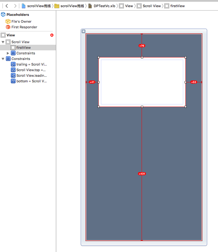 1、xib中,scrollView上的子控件,需要的约束不止4条;