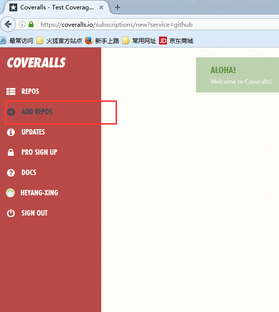 接着我们需要生成一份代码覆盖率的报告,使用的工具是coveralls。做法和travis CI一样,使用你的github账号登录,然后指定你要报告的项目的,这些就不再细说了,唯一一个重要的地方就是获取该项目的token: