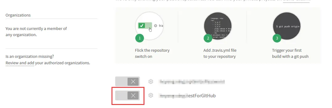 - 登录成功之后进入到你的账户页面:travis-ci.org/profile/xxx…