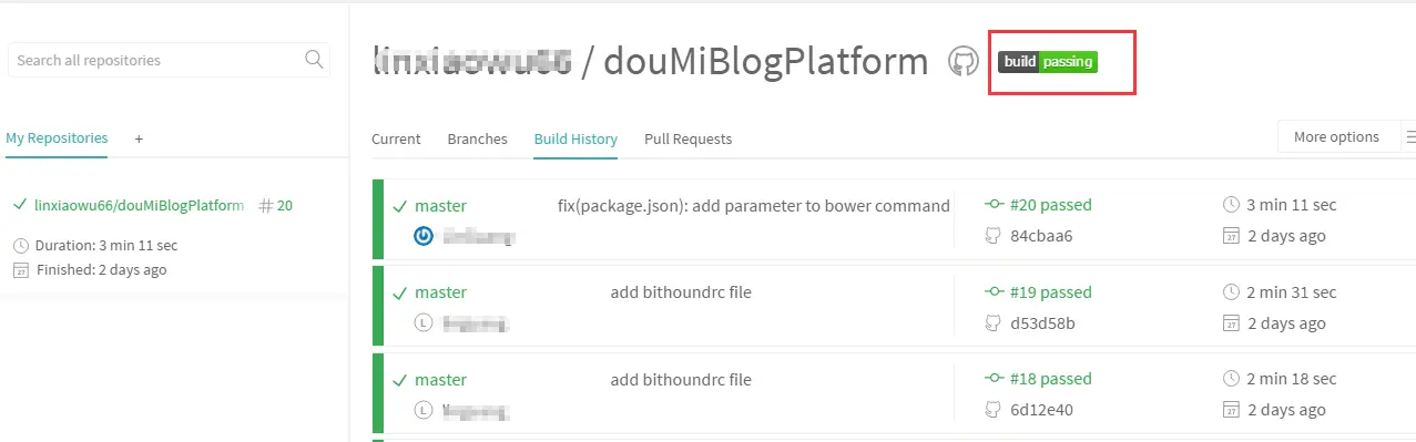 之后就可以在Travis CI上看到你的项目编译状态了: