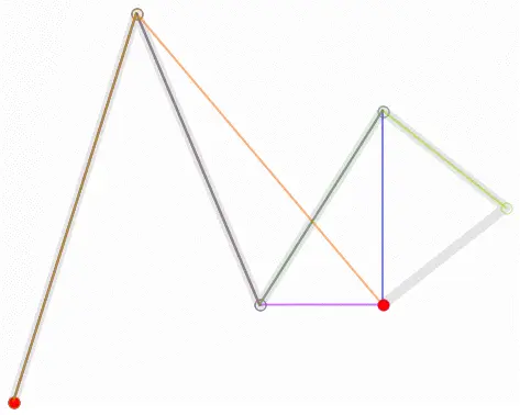多边形以带有线的贝塞尔点连接而成,起始于P0