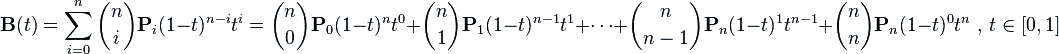 表示由点P0、P1、…、Pn所决定的贝塞尔曲线。则