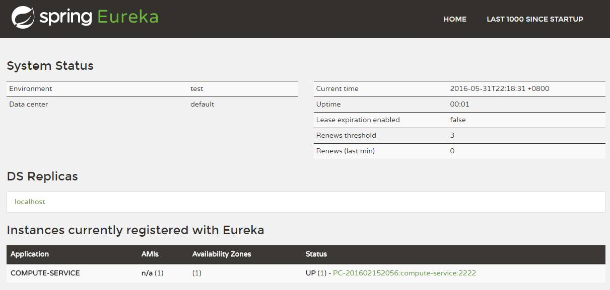 spring.application.name=compute-service server.port=2222 eureka.client.serviceUrl.defaultZone=http://localhost:1111/eureka/