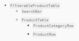 ProductTable是根据state值计算出来的,SearchBar的文本框值和复选框值根据state来显示,每个组件共同的父组件是FilterableProductTable,因此FilterableProductTable拥有state:输入的过滤文本和复选框的值。