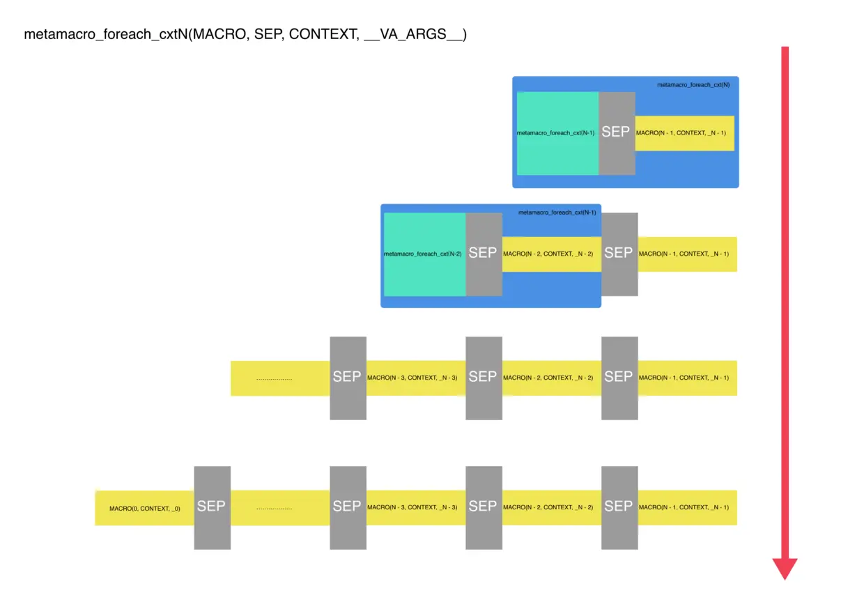 1. metamacro_foreach_cxt(MACRO, SEP, CONTEXT, ...)宏