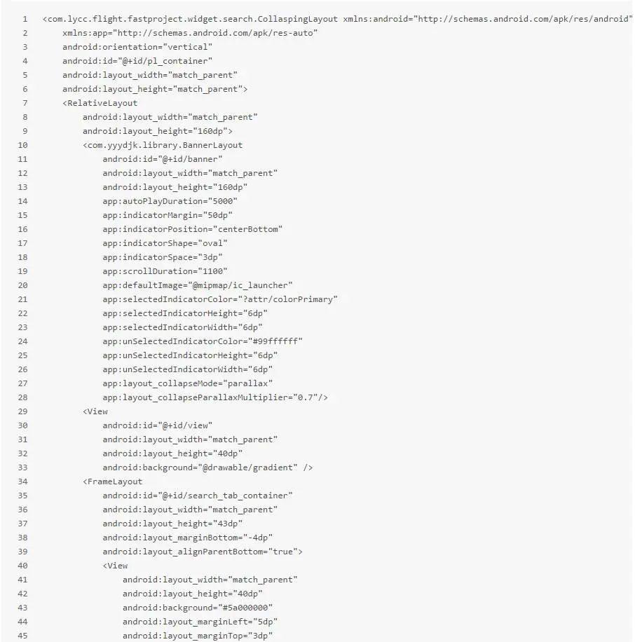 这里用到了一个实现了NestedScrollingParent的CollaspingLayout作为父View和一个实现了NestedScrollingChild的NestedScrollView作为子View进行嵌套滑动,布局可以简单的描述成: