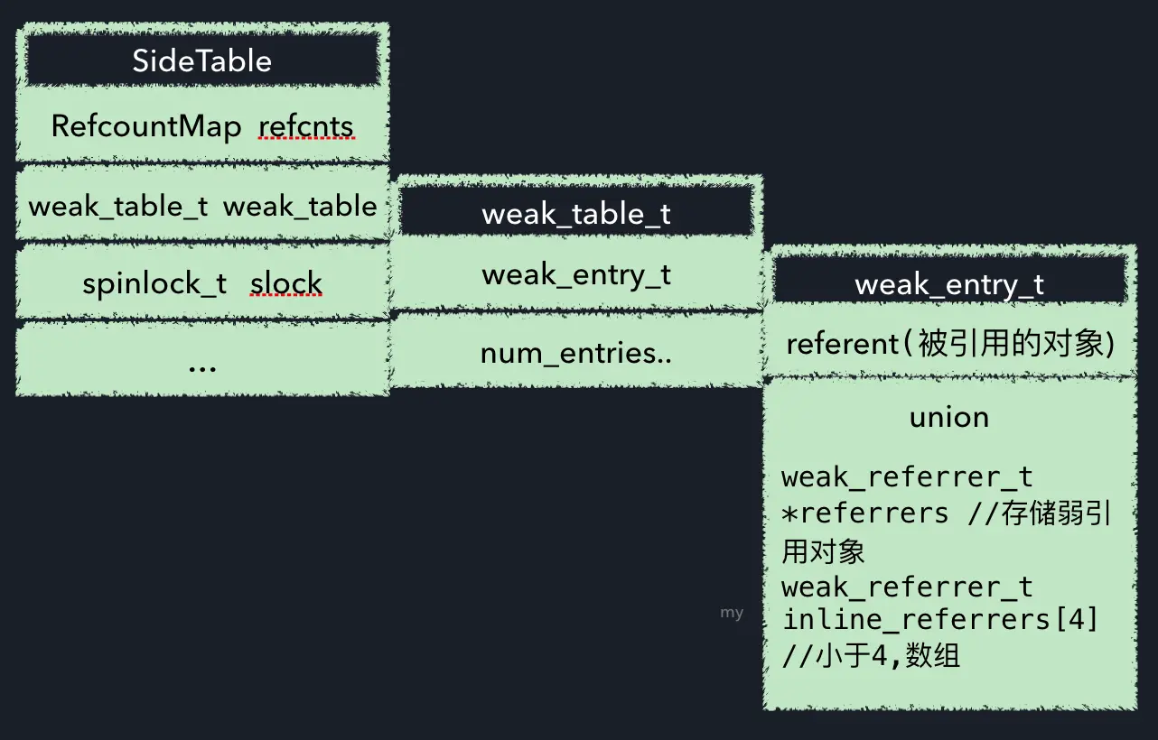 weakly_referenced,对象是否指向一个弱引用对象,没有弱引用对象可以更快的被释放; -