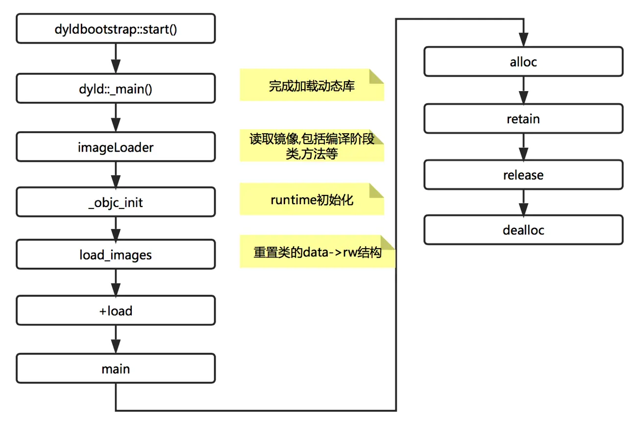 start方法开始,完成动态库的加载; - 读取镜像文件,包括动态链接和可执行文件,类有了初始内存.
