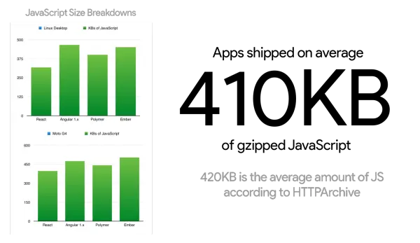 大部分应用在桌面浏览器中会耗费约 4 秒的时间进行 JavaScript 启动阶段(语法解析、编译、执行):