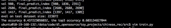 综上,就是利用tensorflow做中文手写识别的全部,从如何使用tensorflow内部的queue来有效读入数据,到如何设计network, 到如何做train,validation,inference,珍格格流程比较清晰, 美中不足的是,原本打算是在训练过程中,来对测试集做评估,但是在使用queue读test_data_dir下的filenames,和train本身的好像有点问题,不过应该是可以解决的,我这里就pass了。另外可能 还有一些可以改善的地方,比如感觉可以把batch data one hot的部分写入到network,这样,减缓在validation时内存会因为onehot的sparse开销比较大。