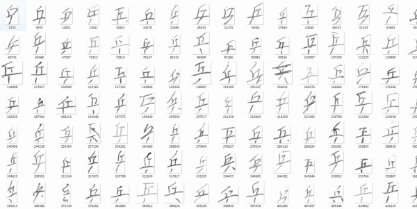 解压后发现是一些gnt文件,然后用了斗大的熊猫里面的代码,将所有文件都转化为对应label目录下的所有png的图片。(注意在HWDB1.1trn_gnt.zip解压后是alz文件,需要再次解压 我在mac没有找到合适的工具,windows上有alz的解压工具)。