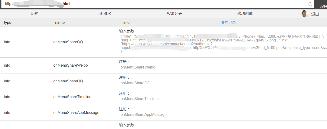 debug:false,//开启调试模式,调用的所有api的返回值会在客户端alert出来,若要查看传入的参数,可以在pc端
