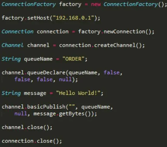小张先找到了某大厂著名MQ, 它占据了企业级市场不少份额, 但是直接使用它的 Java API 编程的话就不那么容易了, 大家可以快速浏览下: