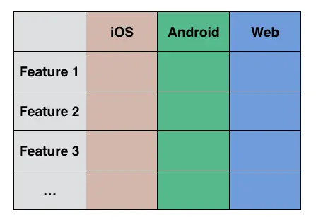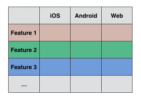 因此,第三阶段我们从团队结构上重新进行了分配。之前,对于每一个功能模块(feature),在不同平台上都需要不同的开发者去完成。