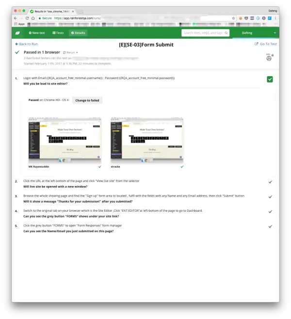 除了使用代码做自动化的功能回归测试,我们也用了 RainforestQA 众测(crowd