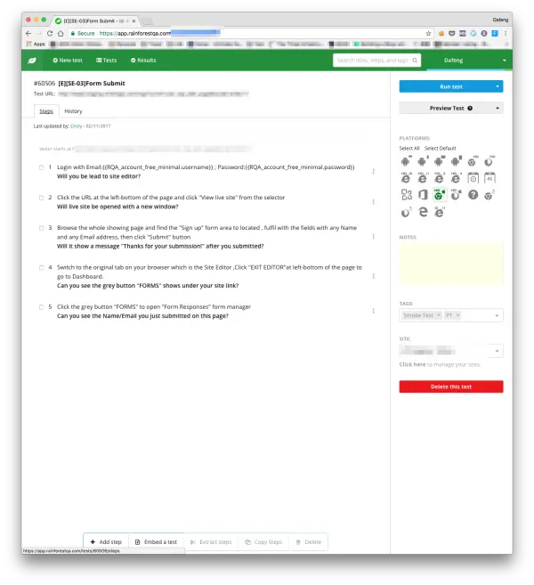 testing)方案。在这个平台上,我们的 QA 工程师和产品团队只需要写好测试用例的步骤(steps),平台会自动分发给有测试经验的测试人员进行手动测试。
