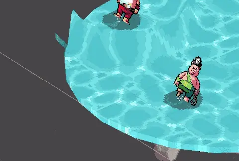 《Splash Clash》就是其中一款优秀的游戏。这款可以被轻松掌握的双人对战游戏由两个像素角色通过跳跃产生波浪,借助波浪将对手推出平台。下面我们从波浪特效、物理、场景设置和粒子这几个方面一起来看看开发者是如何在48小时内将它开发出来的。