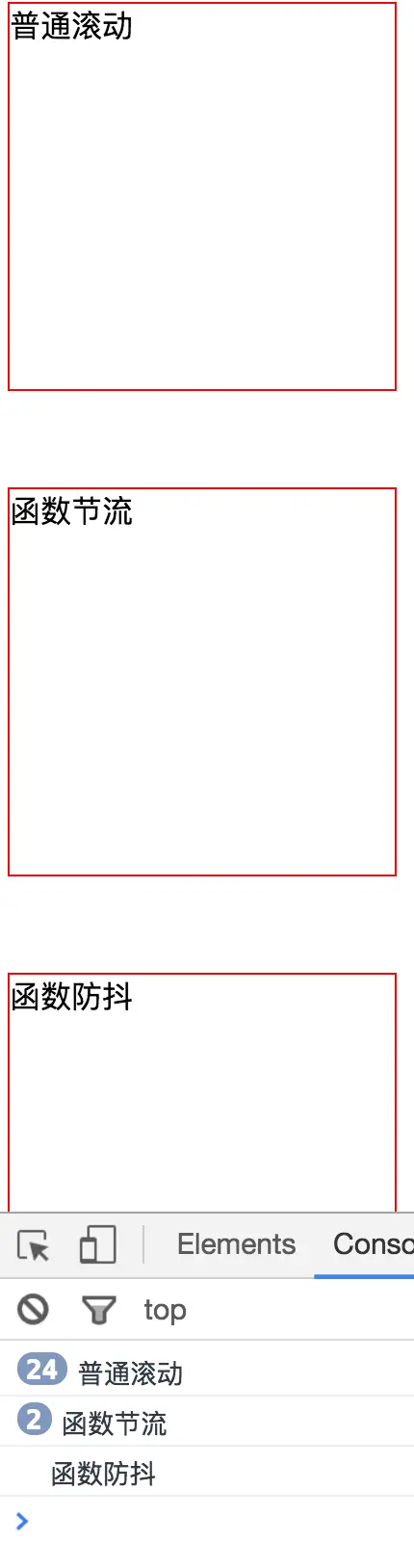 函数节流应用的实际场景,多数在监听页面元素滚动事件的时候会用到。因为滚动事件,是一个高频触发的事件。以下是监听页面元素滚动的示例代码: