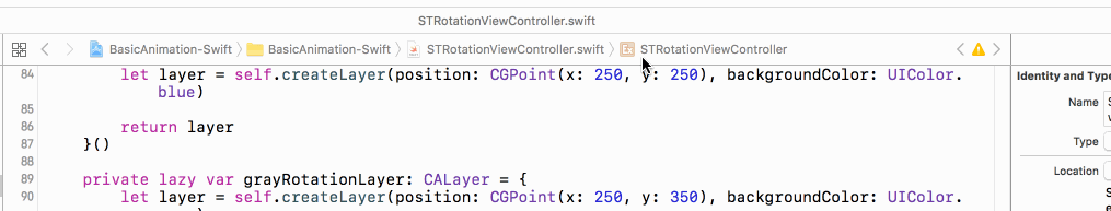 grayRotationLayer.add(createAnimation(keyPath: "transform.rotation.z", toValue: CGFloat(M_PI_4)), forKey: nil)