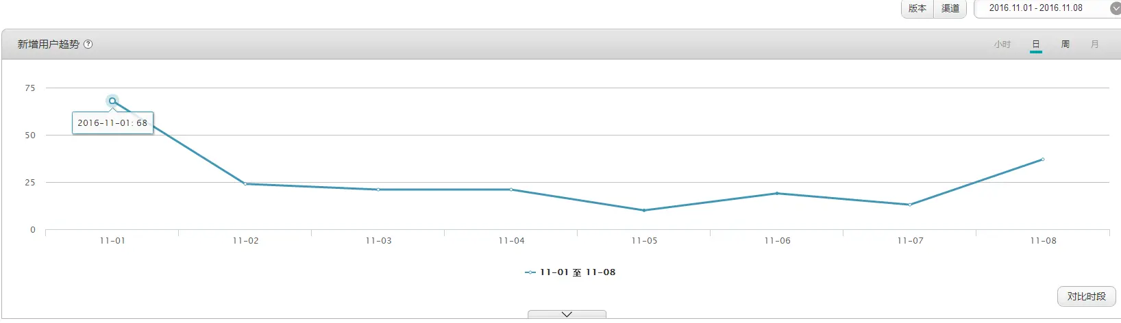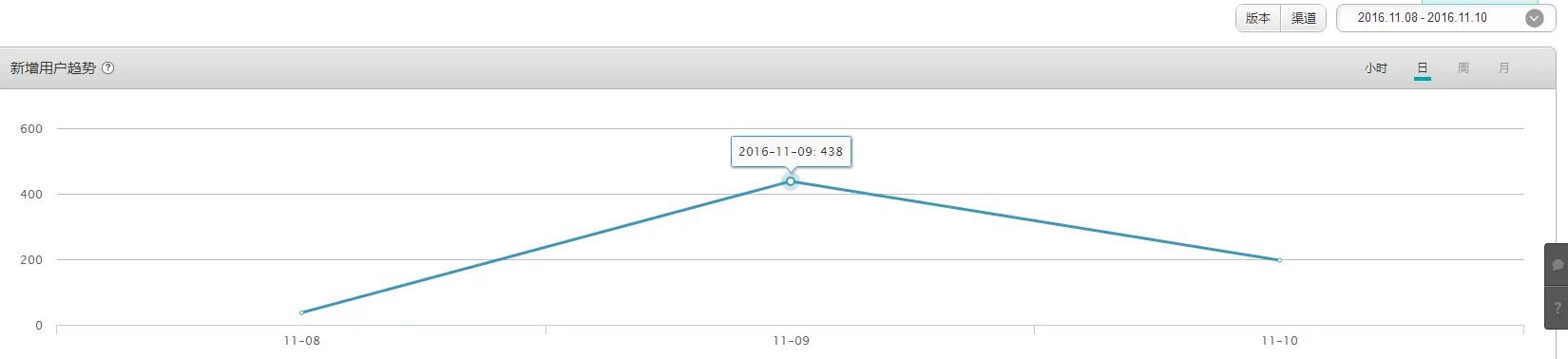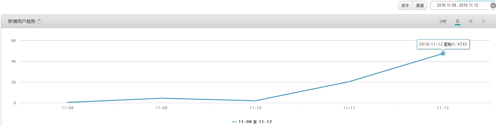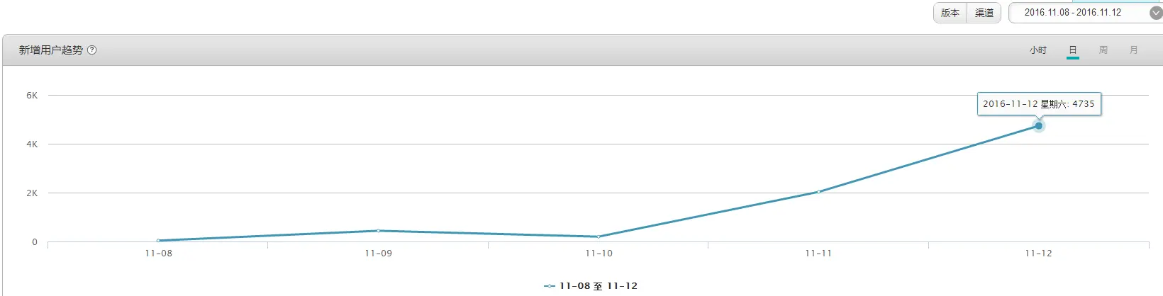 开始前几天下载量都非常低迷,每天新增用户20个左右……