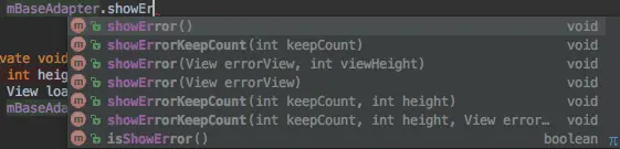 显示Error View 和Empty View 与Loading View 的显示与隐藏是一样,不在过多讲,直接去看源码,提供了几个方法: