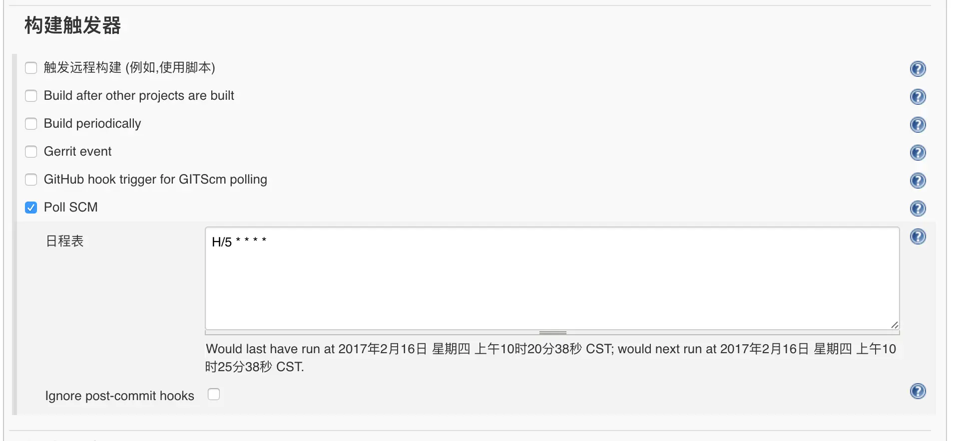 每5分钟检查一次仓库,若有上库,则自动执行代码检测
